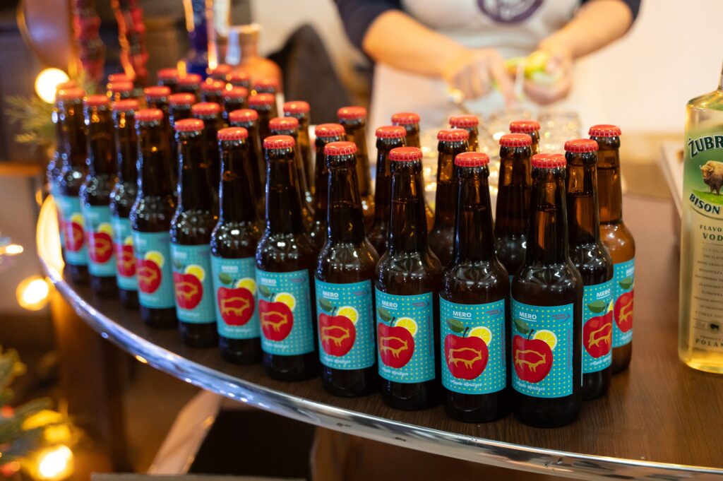- În 2025 am dus mai departe inițiativa Mero Apple Spritzer, o băutură acidulată din mere și primul produs rewilding din România. Băutura este produsă de Casa Despi, folosind mere provenite din livezile localnicilor din zona Munților Țarcu, în special din apropierea habitatului zimbrilor. Inițiativa are drept scop susținerea micilor producători locali și oferă o soluție concretă pentru coexistența dintre oameni și natură. Fundația Rewilding România a facilitat achiziționarea merelor la un preț corect, peste media pieței, contribuind astfel la compensarea eventualelor pierderi cauzate de prezența ocazională a zimbrilor în livezi. Colaborarea a început în 2024, cu un prim lot de 2000 de sticle realizate din 500 kg de mere din Cornereva. În 2025, am intermediat vânzarea a peste 3 tone de mere, crescând implicarea comunității locale. În 2026, ne propunem să extindem inițiativa și să o consolidăm ca un mecanism funcțional de coexistență între oameni și zimbri.